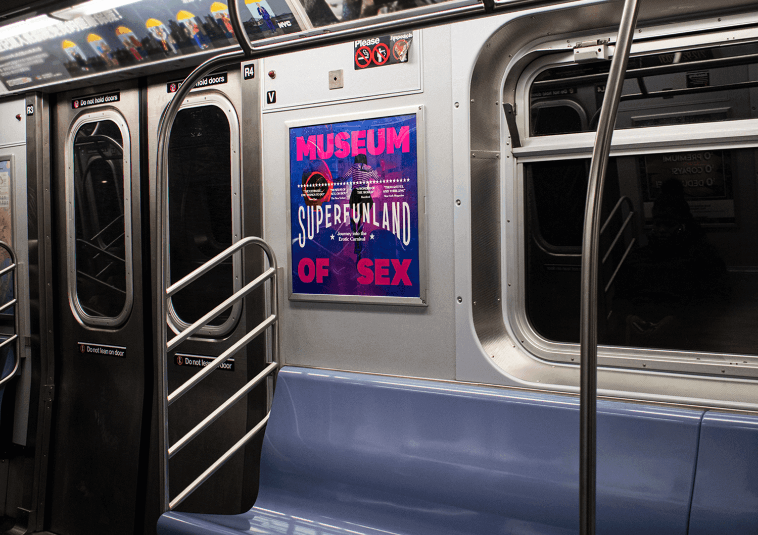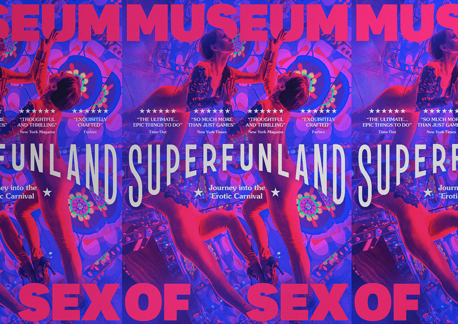 The entrance signage for the exhibition at the Museum of Sex in New York was designed with inspiration from the history of Coney Island, particularly from carnival and 19th-century posters. The typography is bold, playful, and modern, and was created in collaboration with the collective and studio Lovers, based in London.