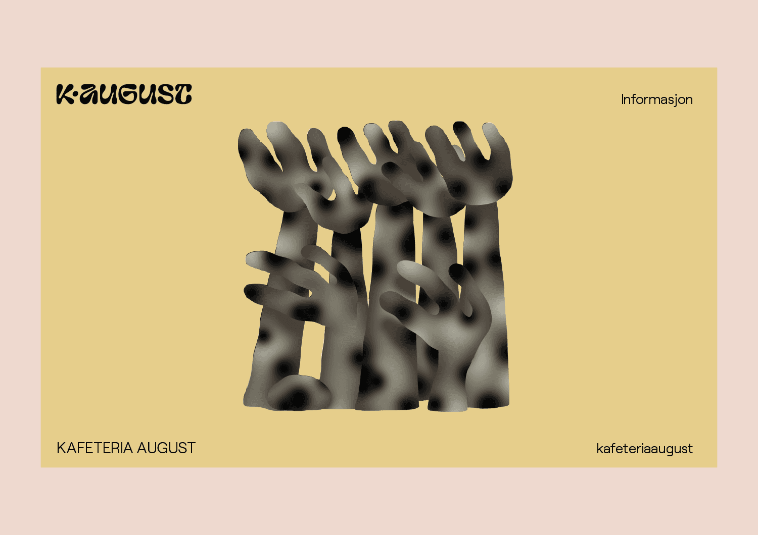 Kafeteria August is a restaurant and wine bar founded by Danish chef Esben Holmboe Bang in Oslo, Norway. The visual identity features a playful and bold design, including a custom organic wordmark and energetic illustrations by French illustrator Célestin Krier. Visual identity designed at Bielke&Yang.